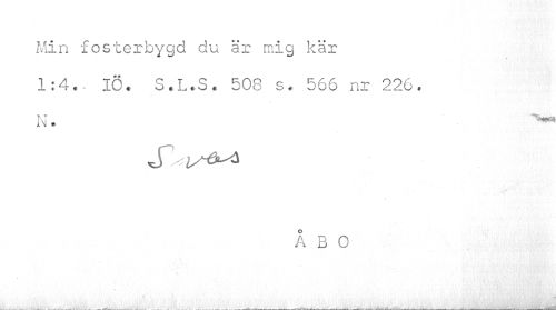 //// Min fosterbygd du är mig kär //// 1:4. IÖ. S.L.S. 508 s. 566 nr 226. //// IM . //// ÅBO ////