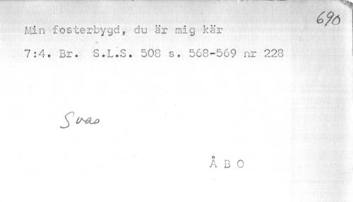 //// é?6 //// Min fosterbygd, du är mig kär //// 7:4. Br. S.L.S. 508 s. 568-569 nr 228 //// J LNSLP //// ÅBO //// A*. ////