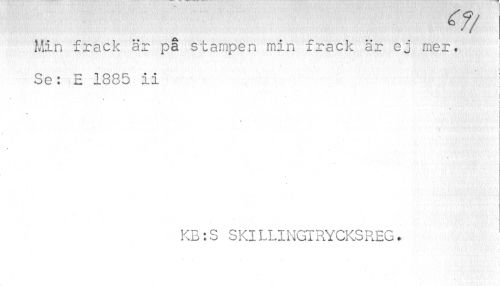 //// Min frack är på stampen min frack är ej mer. Se: H 1885 ii //// r • $ //// i //// * //// KB:S SKILLINGTRYCKSREG. ////