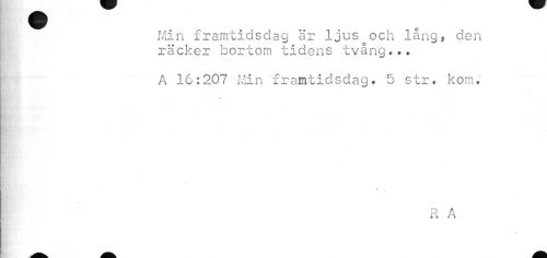 //// Min framtidsdag är ljus och lång, den räcker bortom tidens tvång... //// A 16:207 Min framtidsdag* 5 str. kom. //// //// /RA ////