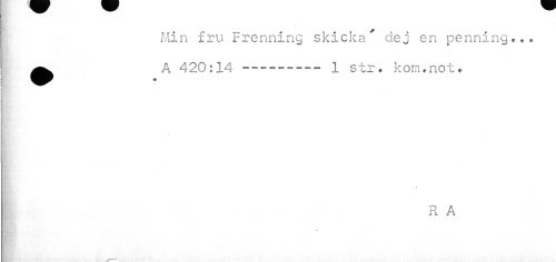 //// Min fru Frenning skicka dej en penning... ^ A 420:14 ------• 1 str. kom.not. //// v> //// « //// i R A ////