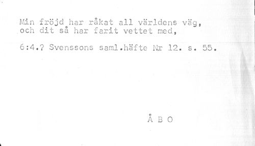 //// r //// Min fröjd har råkat all världens väg, och dit så har farit vettet med, //// 6:4»? Svenssons saml,häfte Nr 12* s. 55. //// V ' //// i i //// mm i i //// K; iv • | -1 //// ÅBO //// k ////