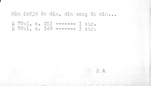 //// Min fröjd är din, din sorg är min... //// B 70:1, s. 211-------1 str. //// B 70:1, s. 149 -------1 str. //// R A //// . //// /¦ 4. •« /AI.'.. ki r a A . !¦'' "'U¦ Ä' • m.é ' M "Si'?* *• • ' f '*'"; .. < . ^Vi-V-V r' ^..^litj ////