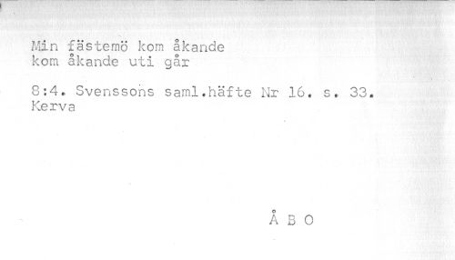 //// Min fastemö kom åkande kom åkande uti går //// 8:4. Svenssons saml.häfte Nr 16. s. 33. Kerva //// ÅBO ////