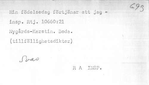 //// Min födelsedag förtjänar att jag -insp. Rtj. 10660:21 Nygårds-Kerstin» Boda * (tillfällighetsdikter) //// ¦H. .« //// R A INSP. ////