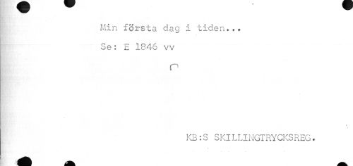 //// Min första dag i tiden... Se: E 1846 vv //// P //// - //// 4 //// KB :S SKILLINGTRYCKSREG. //// //// /