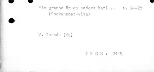 //// Min granne är en heders karl».. s. 24-25 //// (Sockenpoet-Visa) V. Torsås (Vg) //// i //// I F G H : 2449 ////