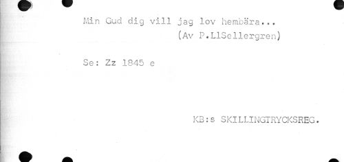 //// Min Gud dig vill jag lov hembära... //// (Av P.LlSellergren) //// * //// Se: Zz 1845 e //// KB:s SKILLINGTRYCKSREG. ////