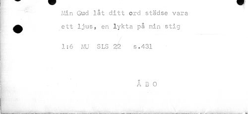 //// i, 1 //// Min Gud låt ditt ord städse vara //// •ett ljus, en lykta på min stig //// i • //// / V //// //// /1:6 MU SLS 22 s.431 //// I * //// i //// ÅBO ////