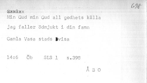 //// C*7f //// Min Gud min Gud all godhets källa ; //// ! //// i //// jag faller ödmjukt i din famn Gamla Vasa stads |visa //// t f //// t //// c //// * //// /i //// 14:6 Öb SLS 1 s.398 //// i //// t * //// i //// i //// o //// A B 0 //// j\ -ti' ////
