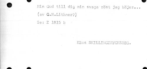 //// W Min Gud till dig min svaga röst jag höjer... //// (av G.M.Lithner?) Se: Z 1815 b //// KB : s S Kl L LI NGT RYCKS REG. //// ir ////