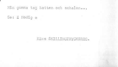 //// Min gumma tag hatten och schalen*.* Se: E Modig a //// KB:s SKlLLINGTRYCKSREG * //// l ////