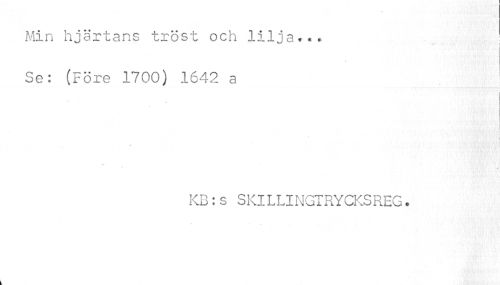 //// Min hjärtans tröst och lilja,«« //// i //// ; //// Se: (Före 1700) 1642 a //// i //// KB:s SKILLINGTRYCKSREG. ////