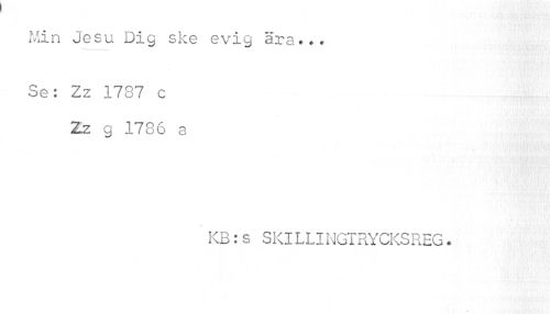 //// Min Jesu Dig ske evig ära... //// Se: Zz 1737 c Zz g 1786 a //// KB:s SKILLINGTRYCKS REG. ////