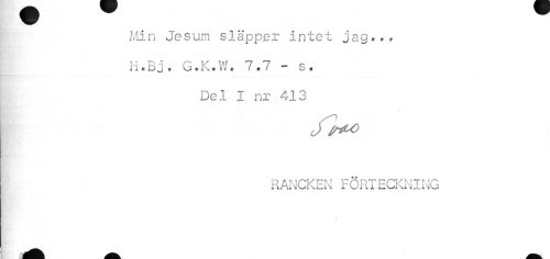 //// Min Jesum släpp.er intet jag»M H.Bj. G.K.W. 7.7 - s. //// Del I nx 413 //// RANCKEN FÖRTECKNING ////