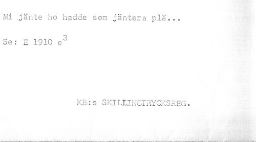 //// Mi jänte ho hadde som jäntera plä... Se: E 1910 e3 //// KB:s S KlL11NGTRYCKSREG, ////