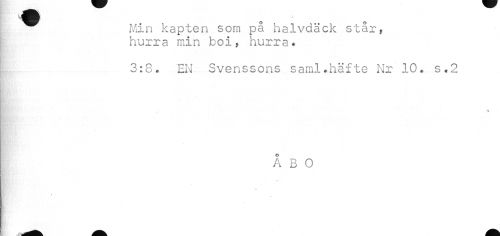 //// Min kapten som på halvdäck står, hurra min boi, hurra* //// 3:8. EN Svenssons saml.häfte Nr 10. s.2 //// ÅBO //// i " ////