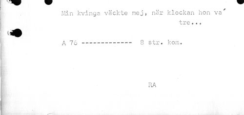 //// Min kvinga väckte mej, när klockan hon va //// L i? G « « i //// A 76 ------8 str. kom. //// RA ////