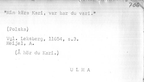 //// /CJb //// "Min kära Kari, var har du vari." //// (Polska) j //// ^ » //// Vgl. Leksbergf 11654, s,3. Meijel, A. //// (Å hör du Kari.) //// f //// U L M A //// \ //// I ////