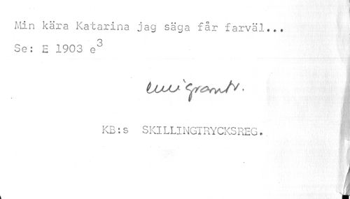 //// Min kära Katarina jag säga får farväl... //// j //// Se: E 1903 e3 //// Luaj • //// a &H'-; //// KB:s SKILLINGTRYCKSREG. //// i ////