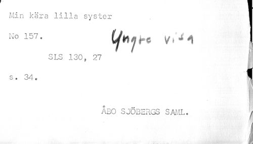 //// Min kära lilla syster 1 //// No 157 * tf*fhc Ml 1 //// SLS 130, 27 //// s. 34» * //// ÅBO SJÖBERGS SAML. f //// A //// > / s ' • ¦ : Jj&tåwvU'iSÄ-;jra JjV1 a ./V: 'I //// V ////