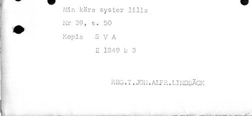 //// Min kära syster lilla ^^ Nr 39 f. s • 50 //// Kopia SVA //// E 1849 b 3 //// r //// t REG.. T. JOH. ALF R.LI NDBÄCK ////