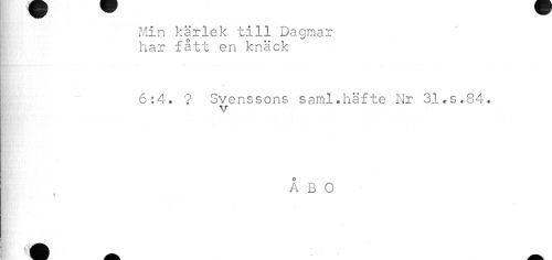 //// i Min kärlek till Dagmar //// : har fått en knäck //// if ' * h* I ^ //// | 6:4. ? Svenssons saml.häfte Nr 31.S.84. //// i //// ÅBO ////