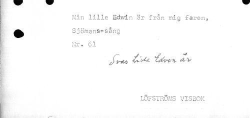 //// Min lille Edwin är från mig faren, | ^^ Sjömans-sång //// Nr. 61 //// i p //// LÖFSTRÖMS VISBOK //// J •* •• • % ////