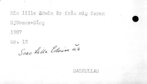 //// Min lille Edwin är från mig faren Sjömans-Sång ¦ ^^ //// 1907 Nr. 12 //// Sm* ** //// DALKULLAN ////