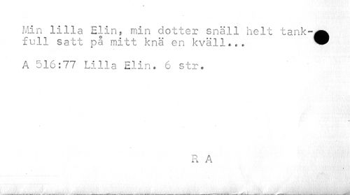 //// Min lilla Elin, min dotter snäll helt tank-A full satt på mitt knä en kväll... ™ //// A 516:77 Lilla Elin. 6 str. //// R A //// _____ _____ . -____ _—_,____——____ _ _ _____—__..._____ —•----1_____. ,.... ..... ..... ...... . ////
