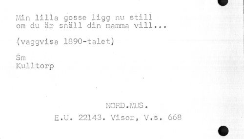 //// Min lilla gosse ligg nu still om du är snäll din mamma vill..- //// v I //// (vaggvisa 1890-talet) Sm //// Kulltorp //// NORD.MUS. E.U. 22143. Visor, V.s, 668 ////