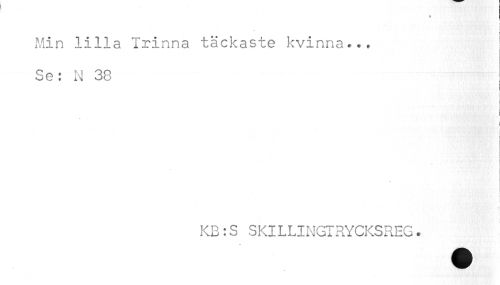//// ! //// • * //// i //// Min lilla Trinna täckaste kvinna,.. Se: N 38 //// l ; //// i //// ) « //// i //// i //// KB:S SKILLINGTRYCKSREG. ////