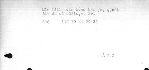//// j ;' //// Min lilla vän hvad har jag gjort Att du så sällsynt är. //// I 8:8 INE 10 s. 29-32 //// * ////