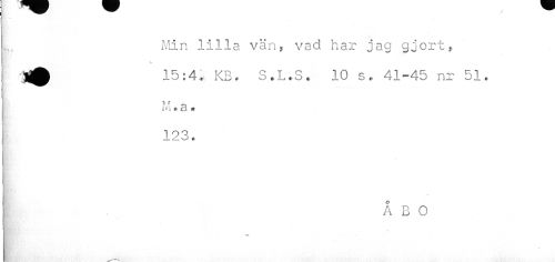 //// Min lilla vän, vad har jag gjort, 15:4. KB. S.L.S. 10 s. 41-45 nr 51. //// itfi « 3 « //// 123. //// Kl'..' //// ÅBO //// K ////