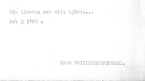 //// //// /v.. s //// » //// Min Lisetta och mitt hjärta... Ses: R 1783 a //// KB:S SKlLLINGTRYCKSREG. //// * ////