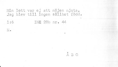 //// Min lott var ej att nöjen njuta, Jag blev till ingen sällhet född. //// 1:6 INE 28b nr. 44 //// N. //// ÅBO //// k ////