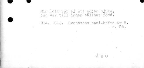 //// Min lott var ej att nöjen njuta, jag var till ingen sällhet född, //// | 3:4,. S.J. Svenssons saml.häfte Nr 5. //// | s. 56, //// I ÅBO. ////