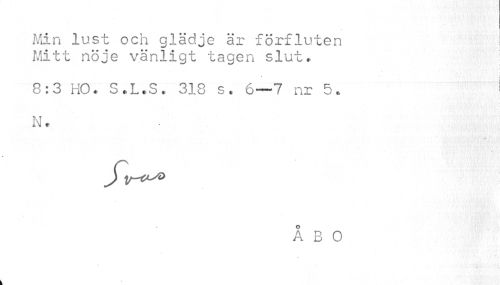 //// Min lust och glädje är förfluten //// Mitt nöje vänligt tagen slut.. //// • « //// 8:3 HO. S.L.S. 318 s. 6—7 nr 5. //// « //// N. //// o //// A B 0 //// < < f ' i' //// k ////