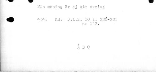 //// Min mening är ej att skriva //// ^ 4:4. KB. S.L.S. 10 s. 22Ö-221 //// ; nr 142. //// HW, I //// ÅBO //// ^^ „ . ^ . ... _ ' j j . ////