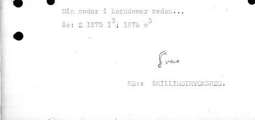 //// v ^^^ //// I Min moder i barndomer redan*.. //// Se: E 1375 1°; 1876 o° //// ¦fl fl //// - //// * //// KB:s SKILLINGTRYCKSREG. ////