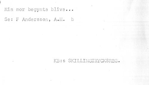 //// Min mor begynta bliva.*. Se: F Andersson, A.H. b //// KB:s SKILLINGTRYCKSREG. ////
