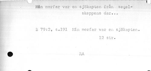 //// Mim morfar var en sjökapten från segelskeppens dar *,* //// B 79:2,. s.191 Min morfar var en sjökapten. //// . //// 12 str. //// j> ////