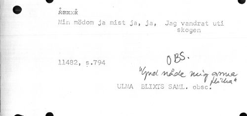 //// Åraxå //// I i Mi n mödom ja mist ja, ja* vandrat uti //// | skogen //// 11432, s ,794 0 //// VYMI CVTVUJl< //// ' VEM** //// ULMA BLIXTS SAML. obsc. ////