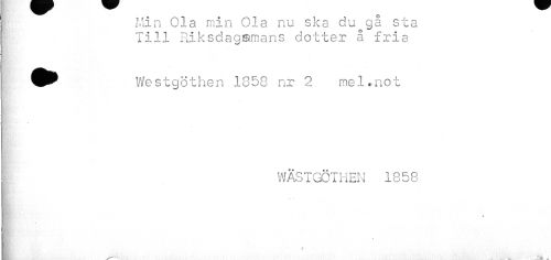 //// Min Ola min Ola nu ska du gå sta Till Riksdagsmans dotter å fria //// * //// i * //// ^^ We st göt hen 1850 nr 2 mel.not //// t //// ml' • //// V - //// I //// WÄSTGÖTHEN 1858 //// % //// i 1 ////