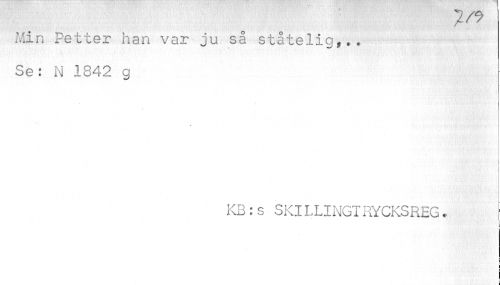 //// Min Petter han var ju så ståtelig,.. Se: N 1842 g //// ¦ //// KB : s S Kl L LI NGT RYCKS REG. ////