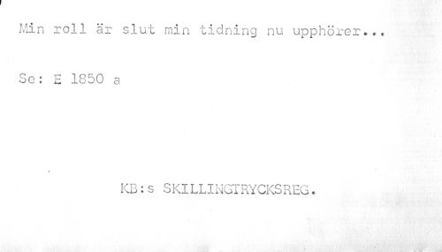 //// Min roll är slut min tidning nu upphoror*.. Se: E 1850 a //// t //// KB:s SKlLLINGTRYCKSREG. //// ' ja. • i , »i ii 4i U (feik # 6%'M SSBr- sä ..ji ////