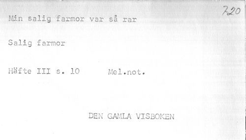 //// A20 //// Mm salig farmor var så rar //// Salig farmor | //// ¦ //// Häfte III s. 10 Mel.not. //// t //// v //// l //// { //// i v //// DEN GAMLA VISBOKEN ////