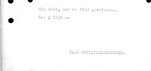 //// Min salig mor en född grevinna... //// i i //// ^ Se: E 1868 mm //// U?-t< ( //// v //// I //// ^ KB:s SKILLINGTRYCKSREG. //// s ////