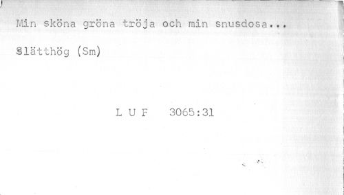//// Min sköna gröna tröja och min snusdosa... 1 //// f i //// Slätthög (Sm) //// ! //// I //// l //// L U F 3065:31 //// I //// t i //// ¦ //// S- //// i i ////