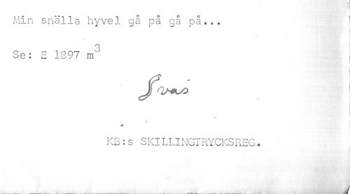 //// Min snälla hyvel gå på gå på».. ! //// Se: E 1897 m3 //// fru^o //// //// /KB:s SKILLINGTRYCKSREG. //// | //// ¦ t VI } I/'. / .. ' .V //// 1 / I ////